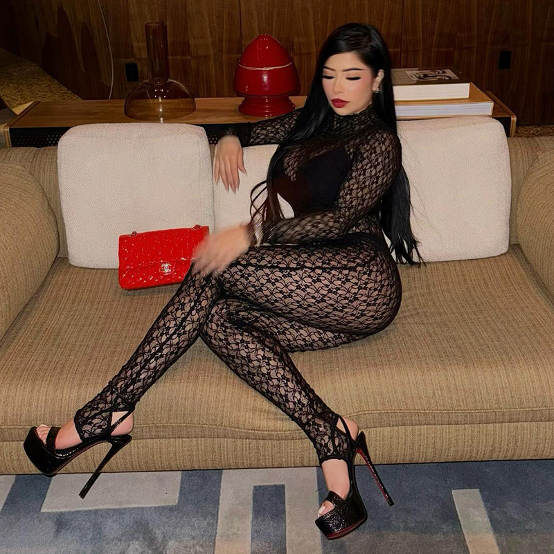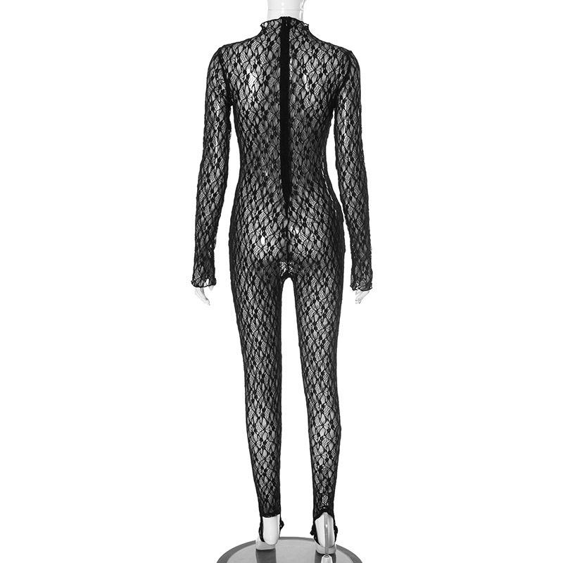 Autumn And Winter Women's Turtleneck Lace Sexy Jumpsuit