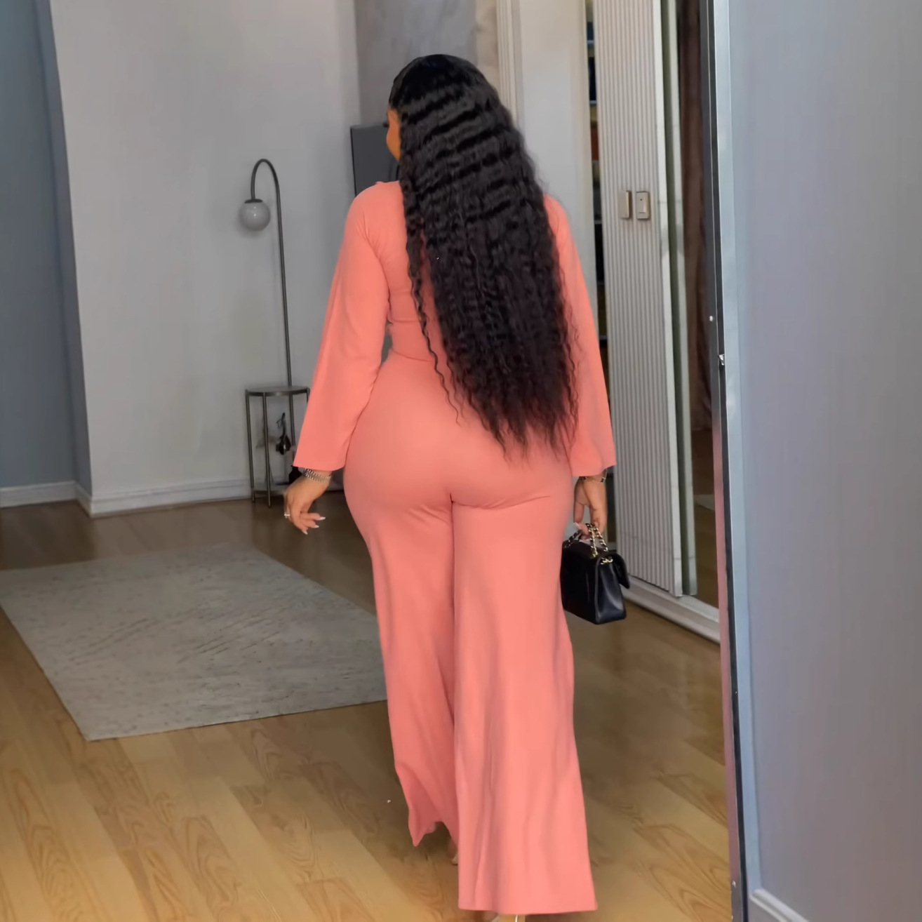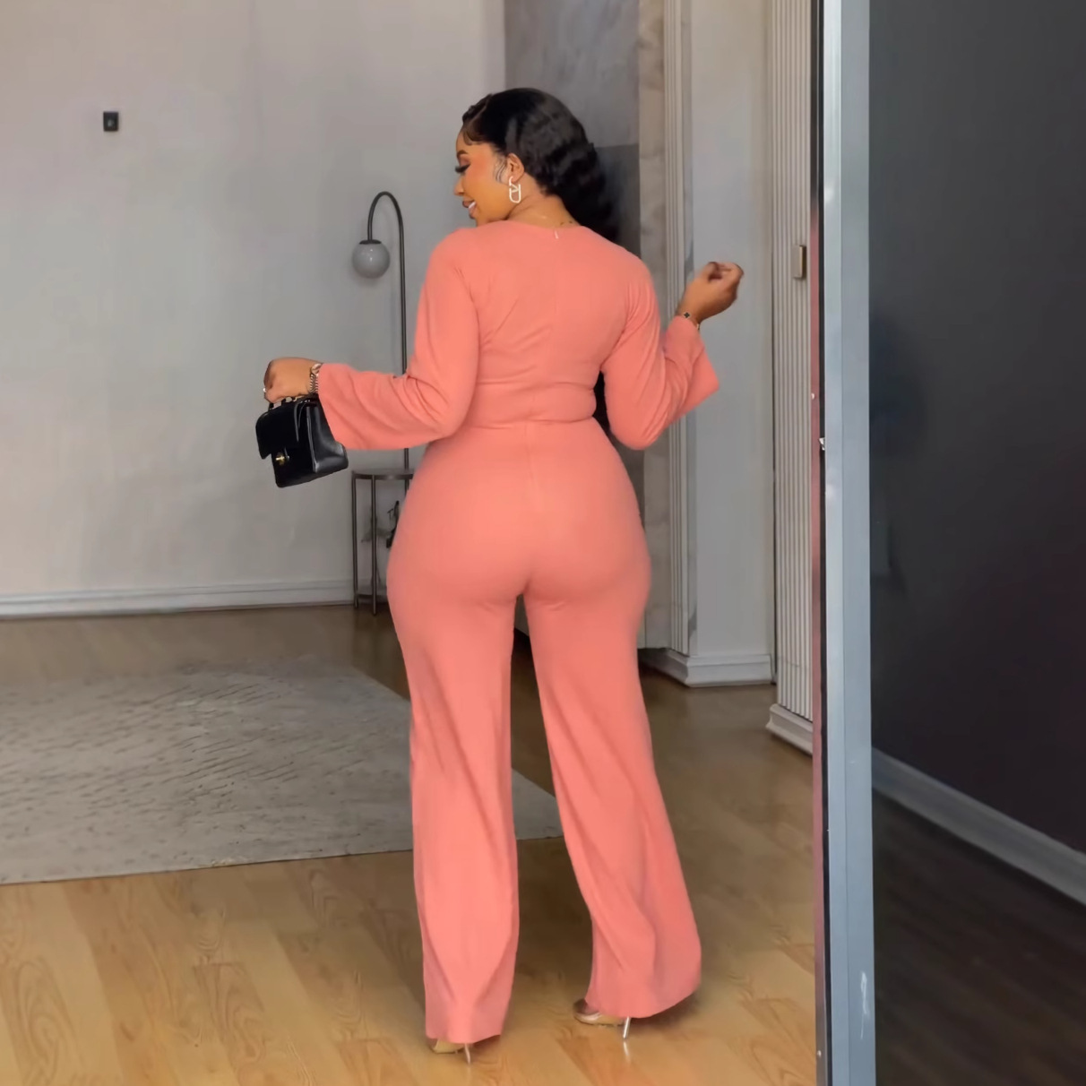 Elegant Stretch Slim Hollow-out Cinched Wide Leg Jumpsuit