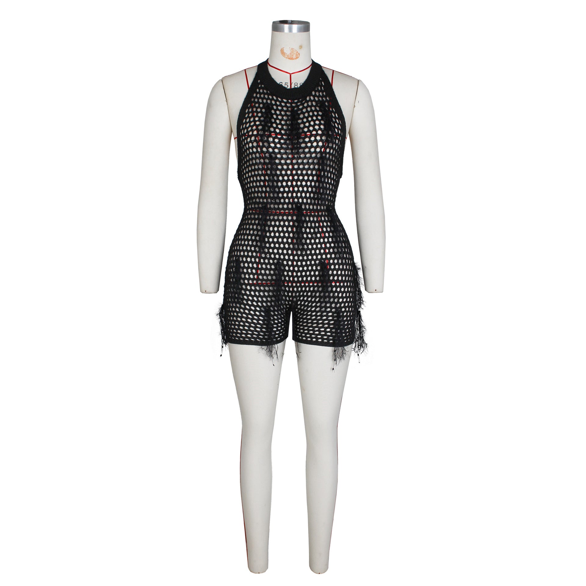 Halter Knitted Hollow-out Jumpsuit Handmade Tassel