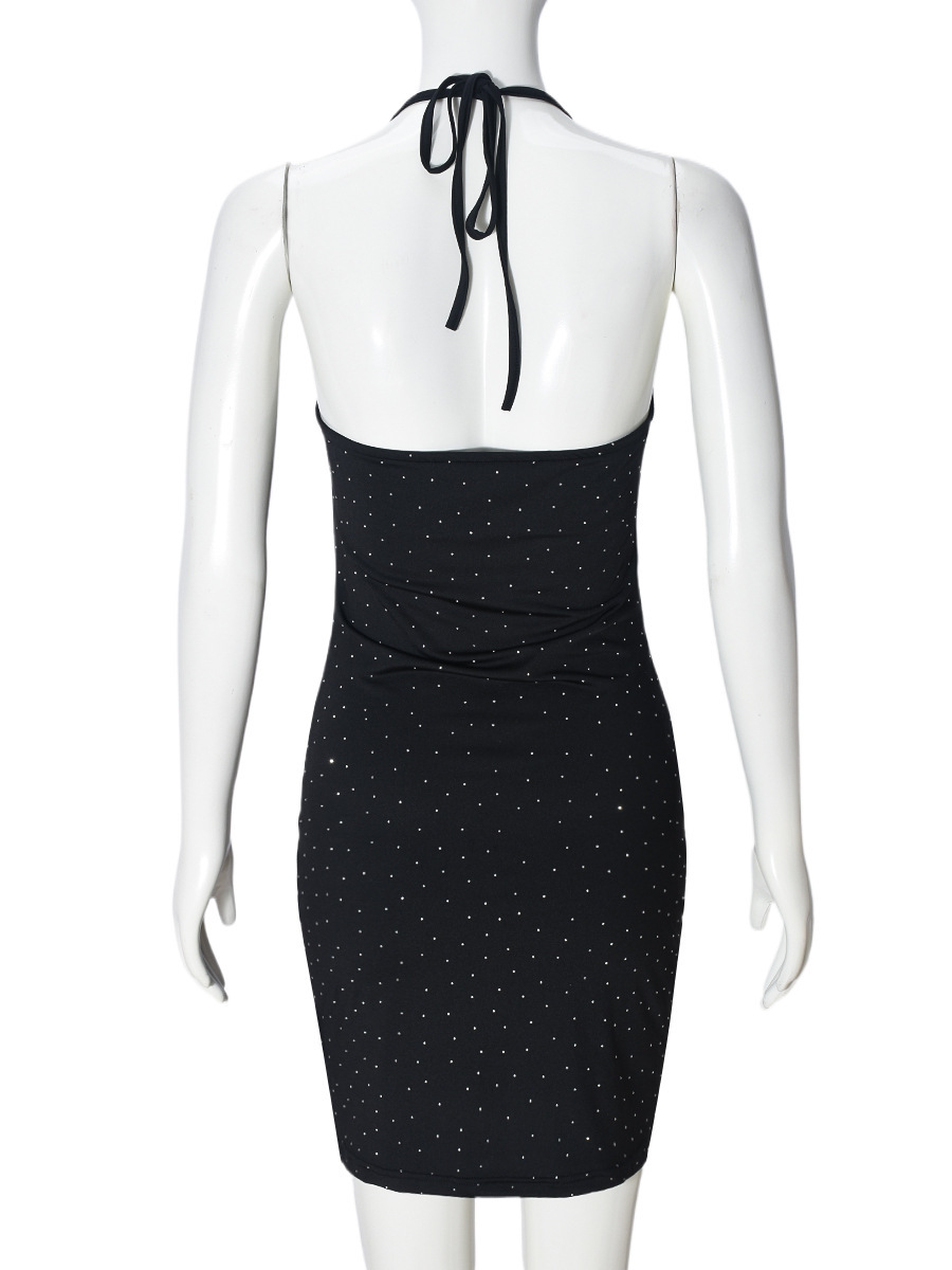 Women's Sexy Slim-fit Halter Strap XINGX Rhinestone Flower Hip Bag Dress