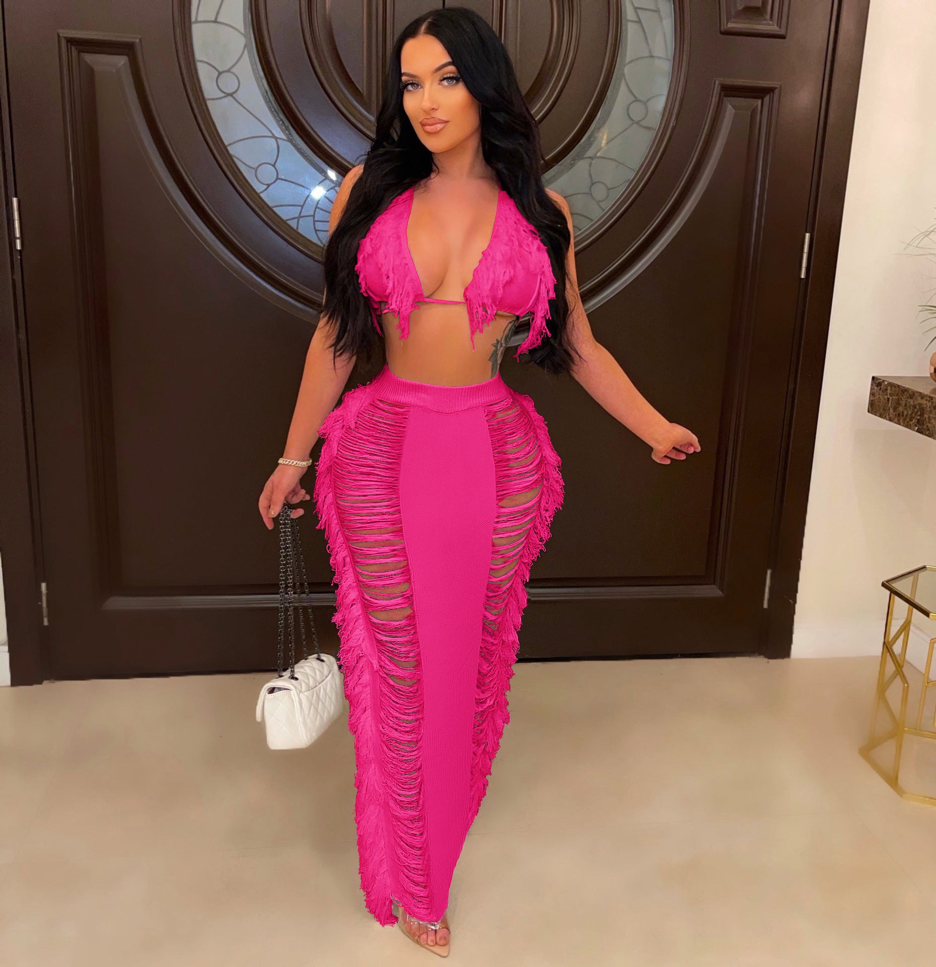 Women's Tassel Knitted Beach Skirt Suit
